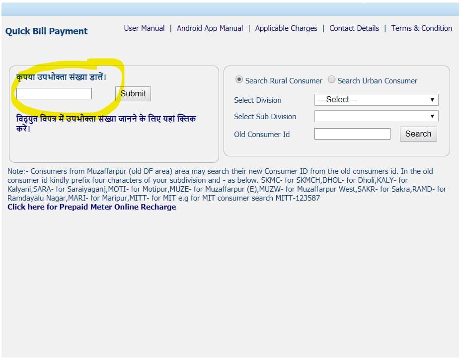 Now, Enter your Consumer No. in the box as I show you in the screenshot below. Then Click on the Submit button.