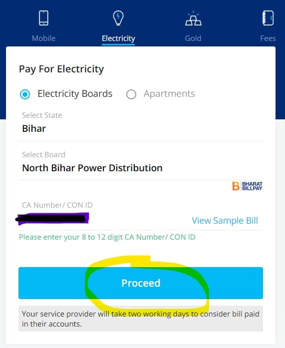 Once you enter all the details click on the Proceed button and you will get your Bijli bill amount.